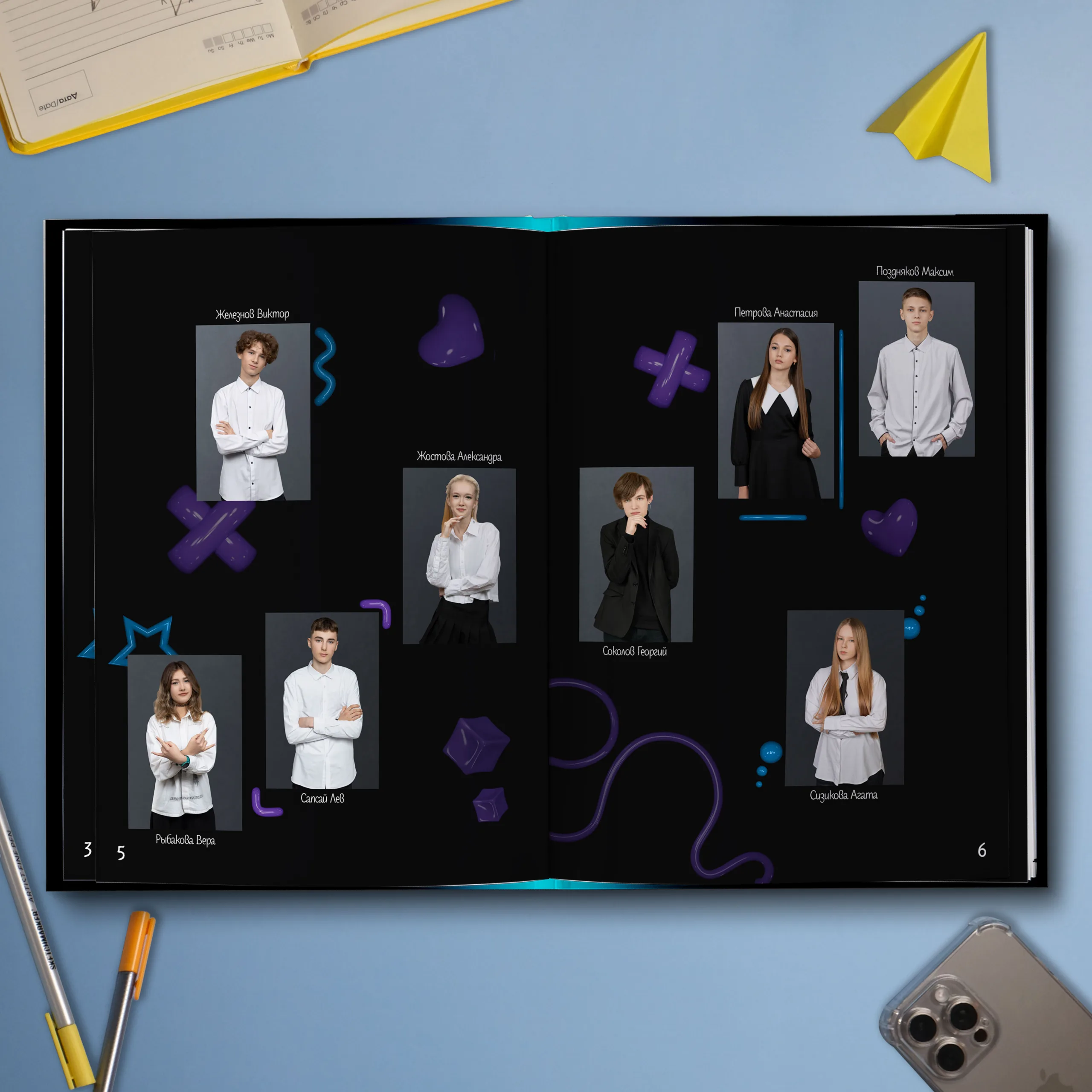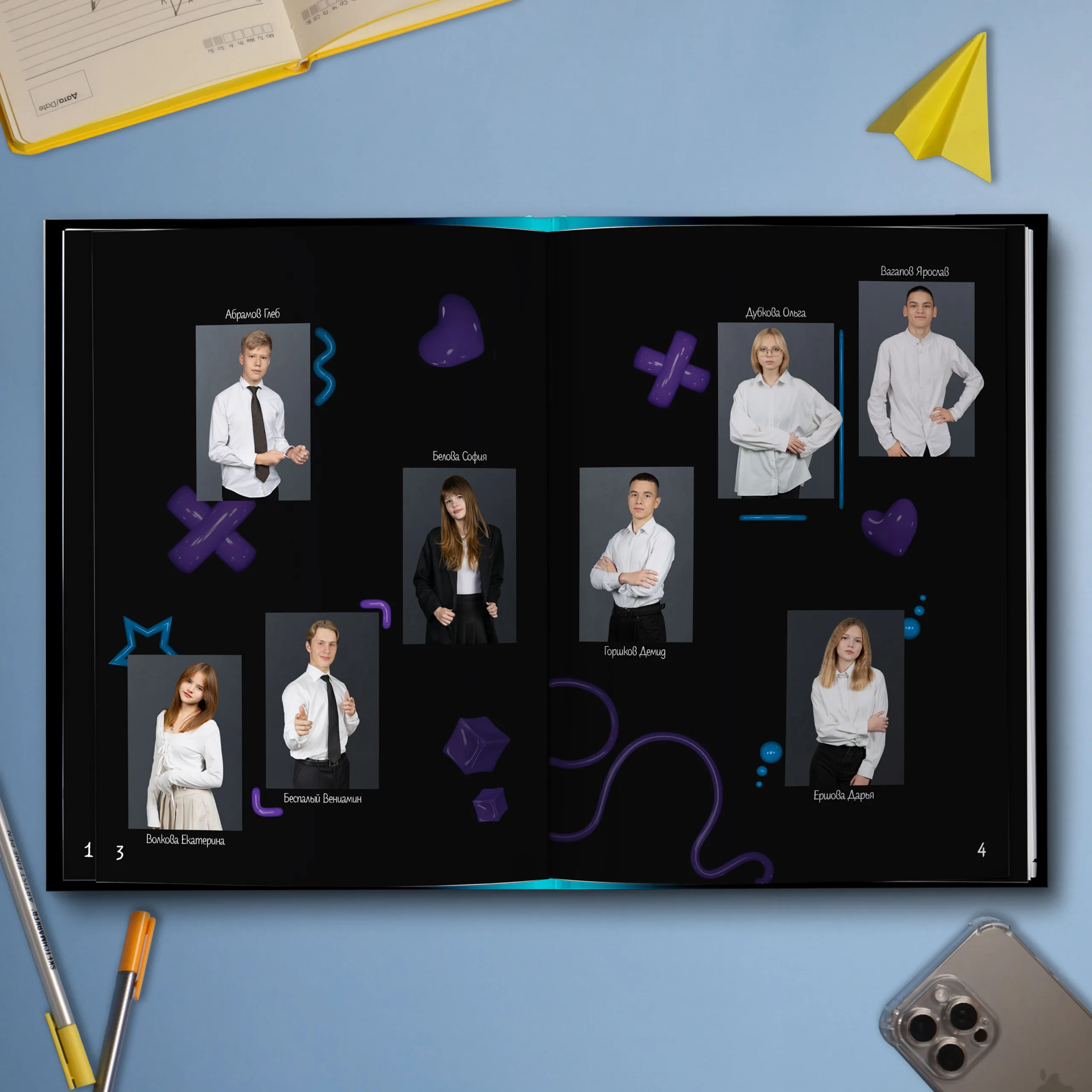 Последние 3 разворота — общие репортажные фотографии класса (12 шт.)