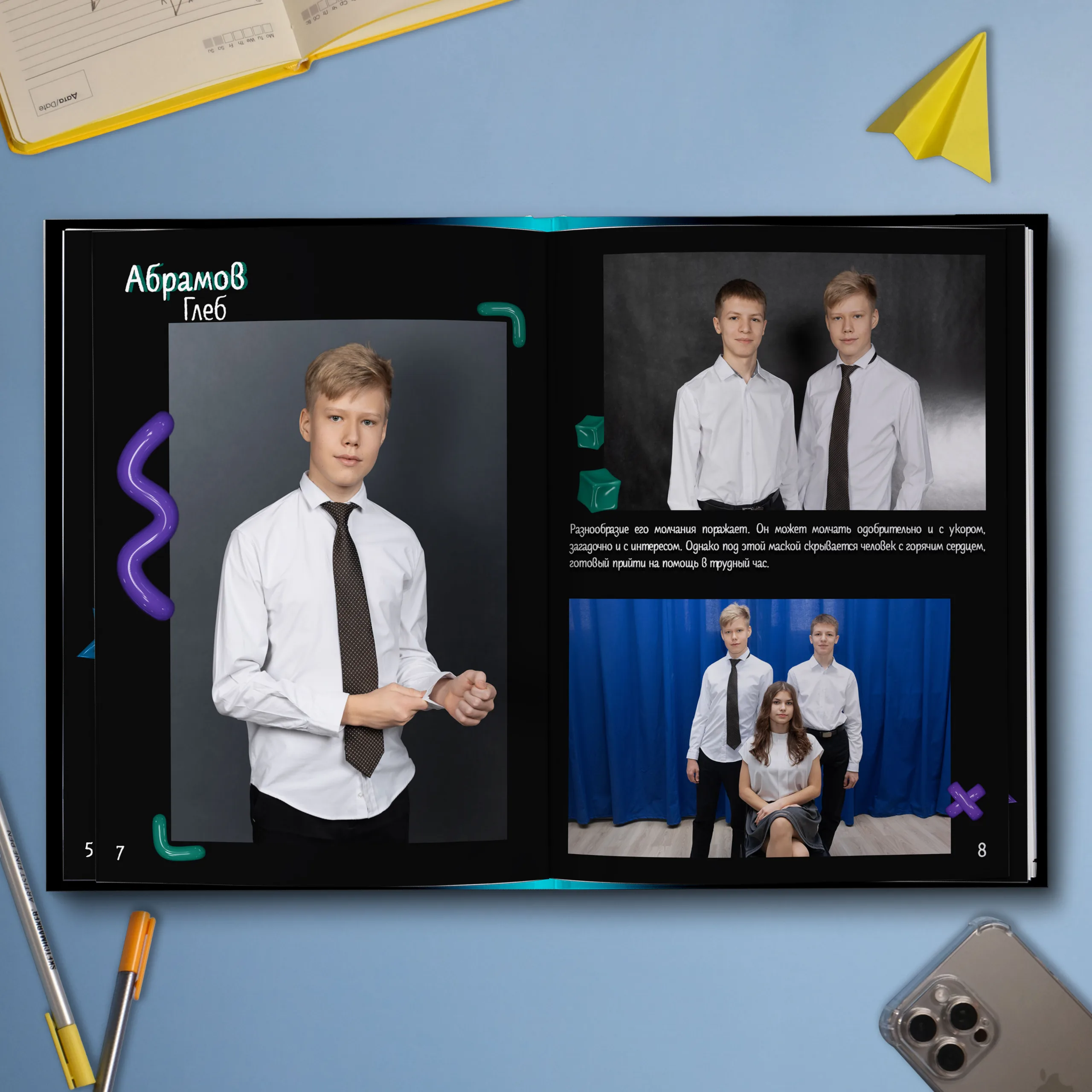 - Две личные страницы ученика с репортажными фото